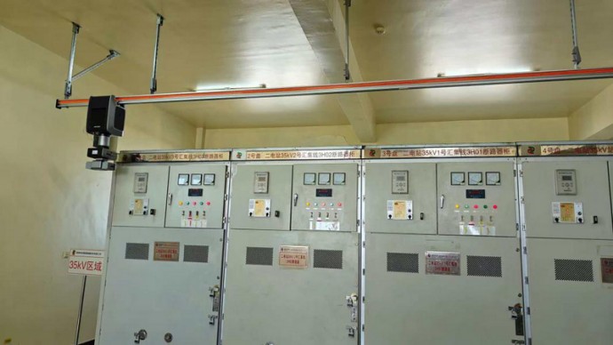 ▲哈密石城子光伏項(xiàng)目機(jī)房中的巡檢機(jī)器人(攝影:胡悅)